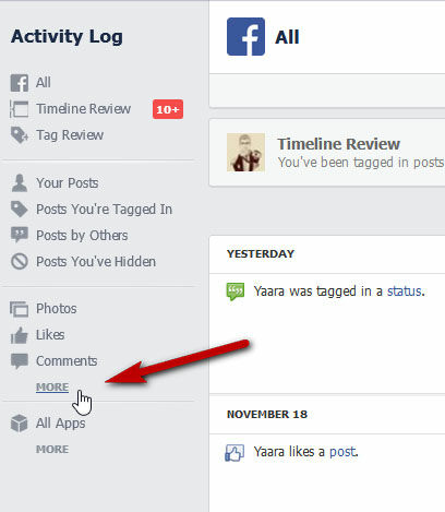 Log.Disini, kamu bisa melihat semua aktivitas di Facebook dan kamu juga